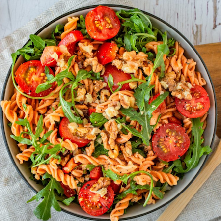 Linsennudeln sind eine großartige Alternative zu herkömmlichen Weizennudeln. Sie sind reich an pflanzlichem Eiweiß und Ballaststoffen, was sie zu einer hervorragenden Wahl für eine nährstoffreiche Mahlzeit macht. Zudem sind sie glutenfrei. In Kombination mit frischen Tomaten und würzigem Rucola entsteht ein leichtes, aber dennoch sättigendes Gericht, das sowohl für warme Sommertage als auch als schnelle Mahlzeit zwischendurch perfekt geeignet ist.
